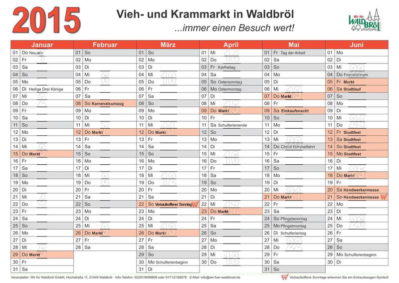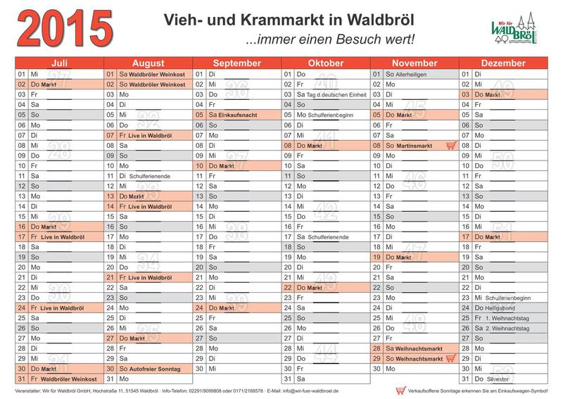 Waldbröl hat seit 160 Jahren einen Vieh- und Krammarkt der weit über die Grenzen der Stadt hinaus bekannt ist. An jedem zweiten Donnerstag finden sich bis zu 250 Händler ein und bieten vom Geflügel bis zur Nähnadel so ziemlich alles an, was das Herz begehrt. Bitte beachten Sie in diesem Zusammenhang, dass die Hühnerhaltung in der Wohnung, auch nur vorübergehend, nicht gestattet ist :-)